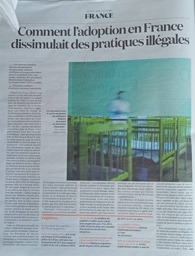 Article dans le journal La Croix - 02 avril 2026