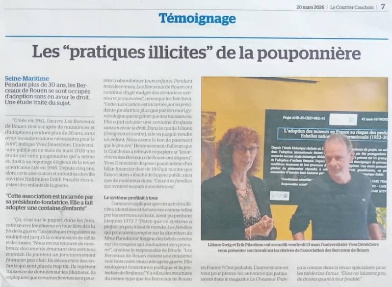 Article dans le journal Le Courrier Cauchois - 20 mars 2026